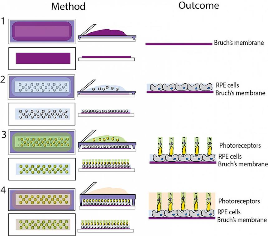 Lavik’s team proposed using a method to screen print tissue models. The idea is to create layers of the various types of retinal neurons that can be derived in a lab from adult stem cells.Image courtesy of Erin Lavik, Sc.D.